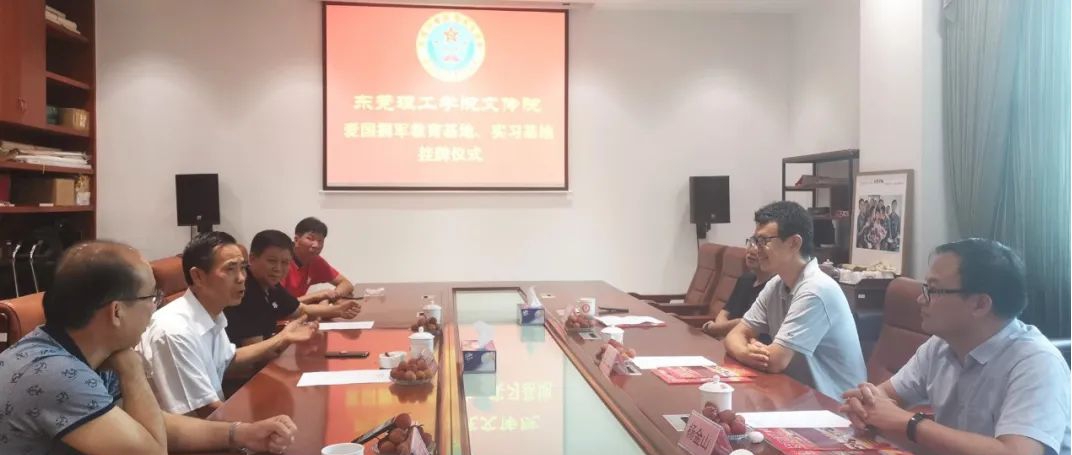 一同参加挂牌仪式和座谈会的还有东莞市爱国拥军促进会常务副会长易志兵、梁景棠,学校文学与传媒学院党委委员、传媒系副主任杨金山,传媒系教师党支部书记郑路。