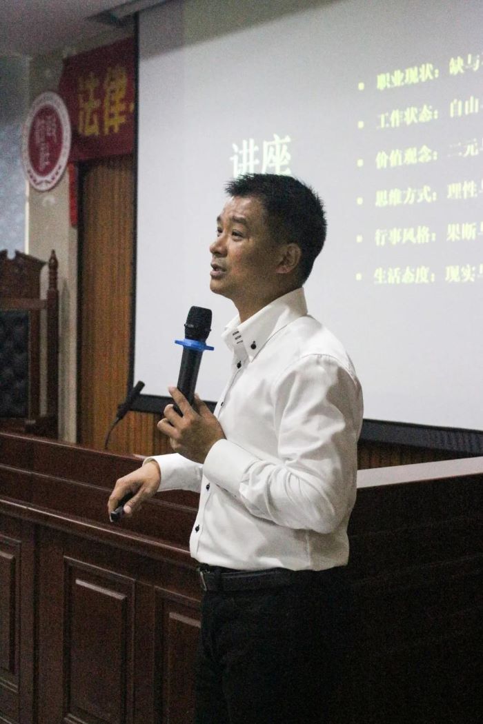 讲座上,拥有27年工作经验的汪宏杰围绕民法典的出台,从职业现状、工作状态和价值观念等多个方面进行阐述,强化法学专业学生在民法典时代下的责任意识。汪宏杰指出,法学专业学生应综合提高自己的能力与情商。“学说话、学做事,也是法律人的一门必修课。”在工作中,能力固然重要,但为人处事、与人交流的方法也影响着工作前景。除了修炼自身,还要平衡好自由与束缚的工作状态也是法律从业者应该学习的。法律人要学会合理调整工作状态。在理想与现实之间,法律人应当心怀理想正义,但也应该脚踏实地,关注社会现实。