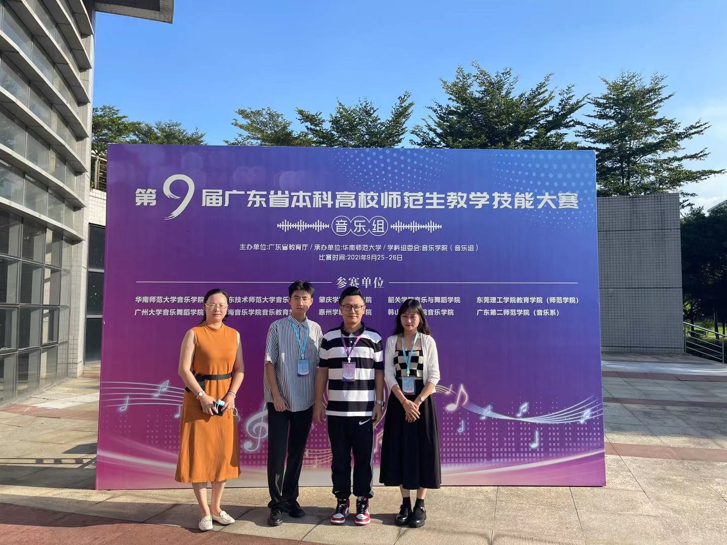 为推进广东省“新师范”改革建设,进一步落实“以赛促教、以赛促学”,9月26日,由广东省教育厅主办、华南师范大学承办的“第九届广东省本科高校师范生教学技能大赛(音乐组)”在华南师范大学举行。我校教育学院(师范学院)选派的音乐教育专业王淑云、邱少伟、张晓童、谢可滢共4位同学在音乐组决赛的激烈角逐中发挥出色,获三等奖、优秀奖各2项的佳绩。