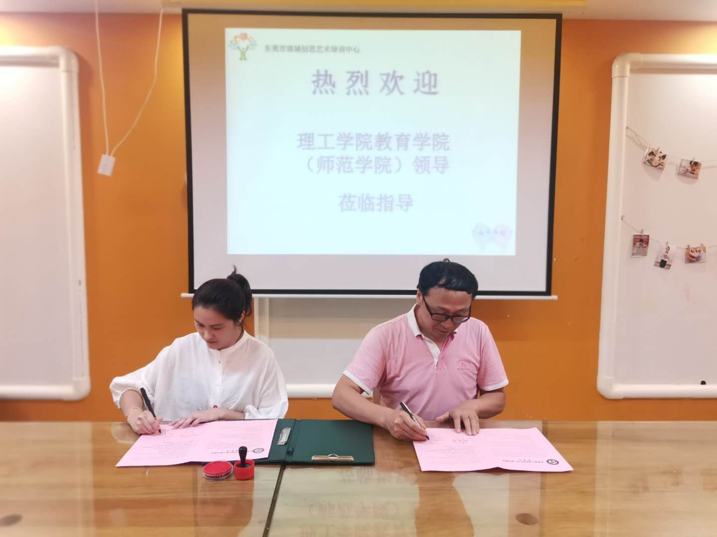 9月16日,教育学院(师范学院)党委书记杨万江带队到东莞市南城创思艺术培训中心学习交流,并与该中心签订了校外教学实习基地协议书,举行了授牌仪式。