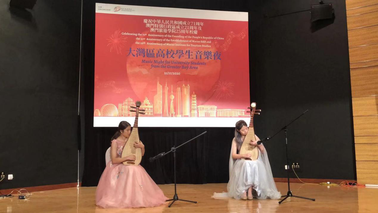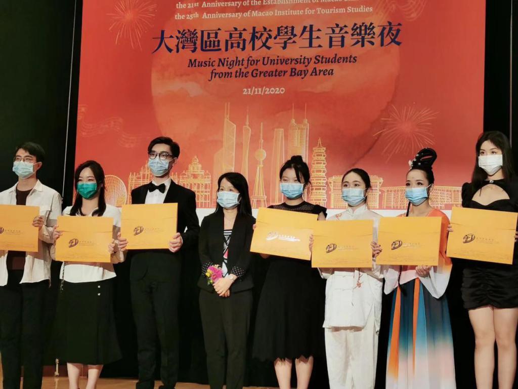 以庆祝国庆71周年和澳门回归21周年为主题的“大湾区高校学生音乐夜”日前在澳门旅游学院拉开帷幕。教育学院(师范学院)音乐专业受邀参加了此次艺术展演交流活动。