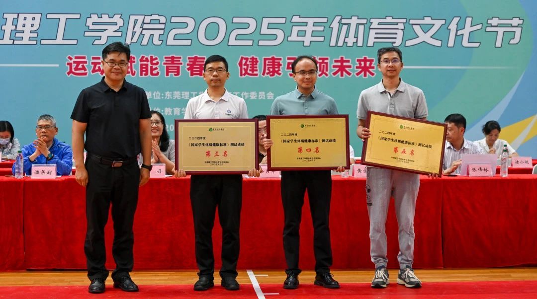 为鼓励莞工学子踊跃参与体育锻炼,开幕式上公布了2024年《国家学生体质健康标准》测试成绩,并为前8名学院颁发奖牌。