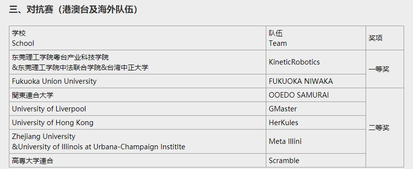在线上评审中,Kinetic战队在对抗赛组别(港澳台及海外队伍)中以总成绩第一名的成绩获得了全国大学生机器人竞赛总决赛一等奖。