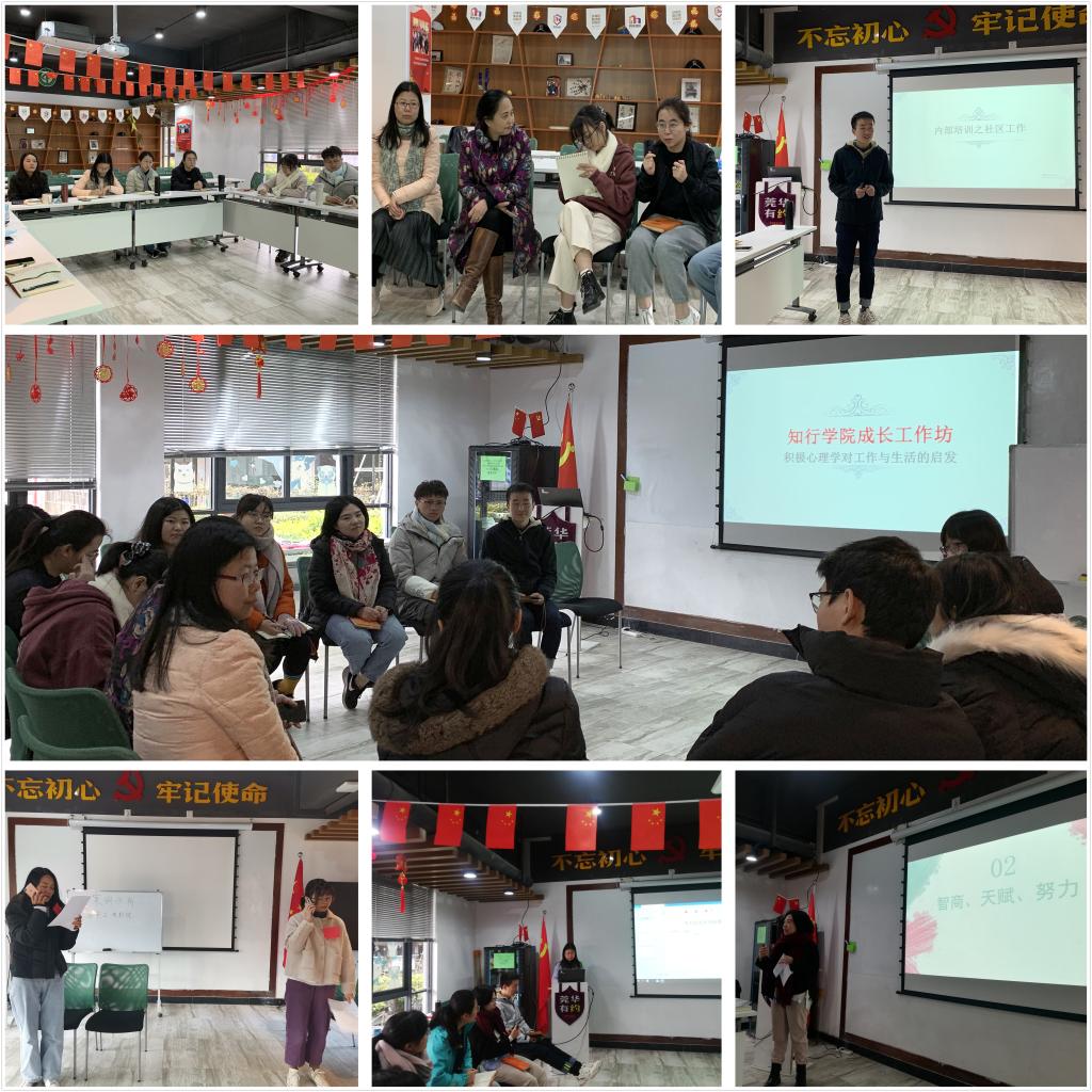 1月8日至11日,为促进团队发展和能力提升,知行学院开展为期三天的团队培训。此次培训由驻校社工组织,知行学院全体人员参加。培训内容包括“地区发展模式知识分享及学生社区实践运用”“积极心理学积极情绪的具体应用”“个案情景演绎及分享”“非暴力沟通模式知识分享和生活工作实践运用”及“《终身成长》读书分享和固定性思维讨论”。