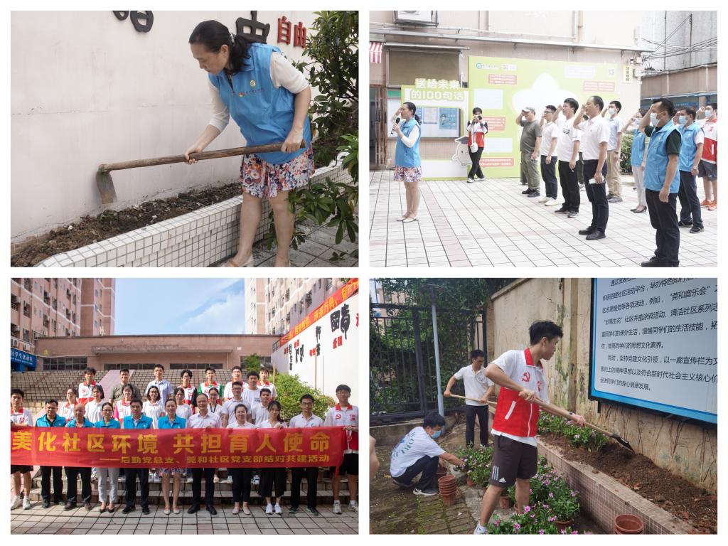 6月29日,后勤党总支、莞和社区党支部开展了“美化社区环境、共担育人使命”结对共建活动,当天20多名党员代表来到莞和社区,在党建墙前、在建党101周年之际,举起右手庄严重温入党誓词,铿锵誓言直抵人心,党员们心潮澎湃,更加坚定了入党初心。