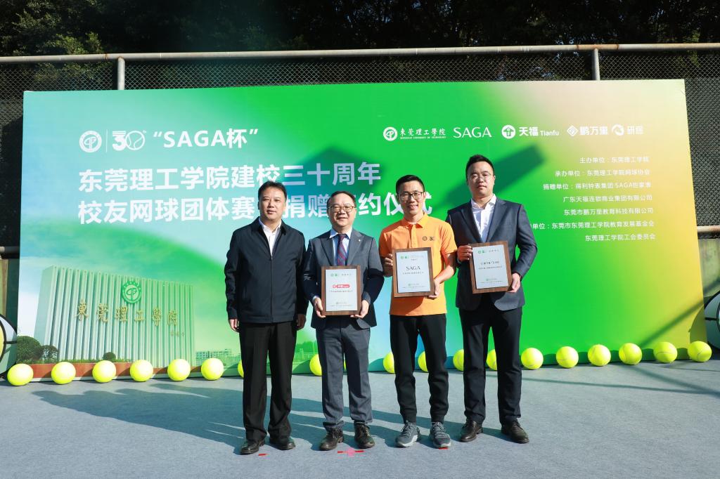为庆祝建党100周年,迎接建校30周年,增强校友母校情谊,11月28日,“SAGA杯”建校30周年校友网球团体赛在松山湖校区举行。校党委副书记、校长马宏伟,校党委委员、副校长李文芳,校办、研究生处、国际交流处、校友办等部门负责人,来自各行各业的80多名校友参加了活动。