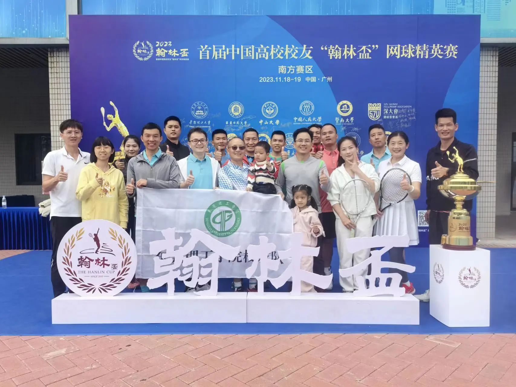 11月18日至19日,首届中国高校校友“翰林盃”网球精英赛南方赛区预选赛在广州南沙均泰国际网球中心举行,由我校教职工、莞工校友组成的莞工网球队与上海交通大学、华东师范大学、复旦大学、中国人民大学、中山大学等“双一流”大学代表队同台交流切磋。在学校教育发展基金会,江怀校友、黎晃厚校友等单位、热心校友的大力支持下,莞工网球队齐心协力,克服困难,最终取得第五名的优异战绩,同时也获得了晋级总决赛的资格。