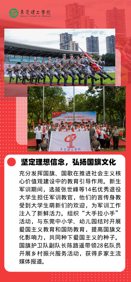 学校第三次党代会将实施文化引领战略确立为五项发展战略之一,将其作为落实立德树人根本任务的重要载体。近年来,学校持续加大资金投入,培育特色文化品牌,广大师生积极投身校园文化建设,拓展莞工文化内涵,文化育人不断获得新动能,产出好成果,发挥高效应。