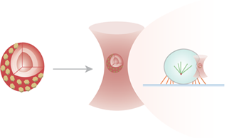细胞力学在细胞生长、分裂和运动等生命活动中起着至关重要的作用,可用于疾病诊断、免疫分析和药物筛选等,因此,开发准确、稳健且灵敏的检测单细胞力学的方法尤为必要。 光镊技术可以在3D范围内检测细胞的机械特性,准确反映其力学特征。但由于光阱力的束缚(皮牛级),其生物应用受到限制。在本研究中,团队利用抗反射涂层结构和离子共振效应,构建新型纳牛力学探针,实现光阱力从皮牛到纳牛的飞跃,用于检测有丝分离中期海拉细胞的硬度。该探针选用二氧化钛和二氧化硅作为抗反射涂层结构,为进一步提高力学探针的光阱力,在探针表面修饰上转换纳米颗粒,当激光频率与稀土离子的偶极振荡频率匹配时,数十万个稀土离子可以显著增加其电极化率、介电常数,从而增加探针的整体极化能力,进而提高光阱力。在光镊显微镜下,检测到最大陷阱刚度为14.24 pN μm⁻¹ mW⁻¹。为进一步验证该新型纳牛力学探针在细胞力学的应用,团队检测了有丝分裂时期海拉细胞的弹性模量为1.27 ± 0.3 kPa。该纳牛力学探针为探索三维细胞力学提供了可能,推动在单细胞水平上解析复杂的生命活动,为疾病诊断、治疗及新药合成提供新的方法。